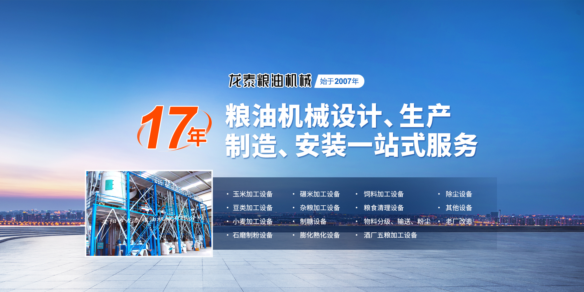 安陽市龍泰糧油機械有限公司是一個集糧油機械設計、生產制作、安裝于一體的設備制造商。公司坐落于農業生產基地河南省安陽市。多年來,公司與科研機構建立了廣泛的技術協作關系,精心致力于糧食加工設備的技術創新與應用,產品涵蓋整套碾米機械、小麥加工設備、玉米加工設備、雜糧加工設備,飼料加工及油脂設備等多個領域??沙薪尤椎慕昏€匙工程,提供從資金預算,整體規劃,土建設計,設備制造、安裝、培訓,售后保障等一站式服務?! ∥夜緭碛歇毩⒆灾鬟M出口權及產品原產地注冊證書。產品除國內市場外,多次出口到,亞洲,非洲,南美洲、東歐等多個國家及地區。為國內外多家企業提供了工藝先進,技術過硬,節能的糧油設備,深得國內外客戶的一致好評。 公司以“質量就是生命”為宗旨,根據客戶不同需求,采用合理的技術方案,為客戶量身打造投資建廠方略,爭取實現高收益。公司生產過程嚴格按照合同和圖紙設計要求,生產符合設計標準、檢測標準、質量優良的產品供給客戶,并提供安裝、調試、培訓,保修期免費維修,終身免費咨詢等服務,確保設備在長期使用中穩定運行。 龍泰-愿與您一起攜手共創輝煌!